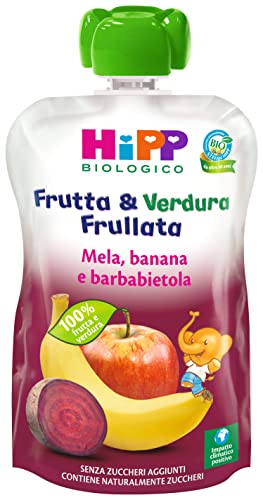 HiPP - Frutta e Verdura Frullata Bio per Bambini, Purea al Gusto Mela, Banana e Barbabietola, Senza Zuccheri Aggiunti, 6 Confezioni da 90 gr