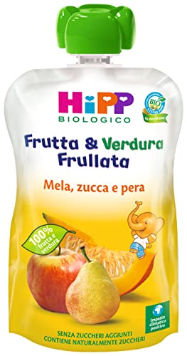 La frutta e verdura frullata HiPP Bio è una purea pensata per accompagnare il tuo bambino alla scoperta del gusto delle verdure fin dalle prime fasi dello svezzamento sia a merenda sia a fine pasto