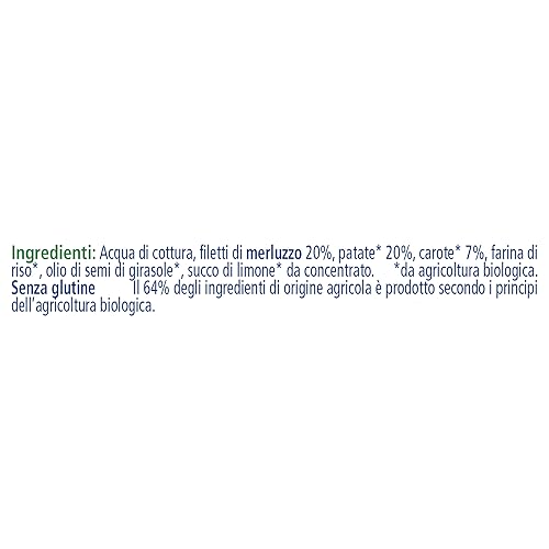 Omogeneizzato HiPP al gusto merluzzo con carote e patate per lo svezzamento del tuo bambino, ideale per completare pappe, brodi e passati