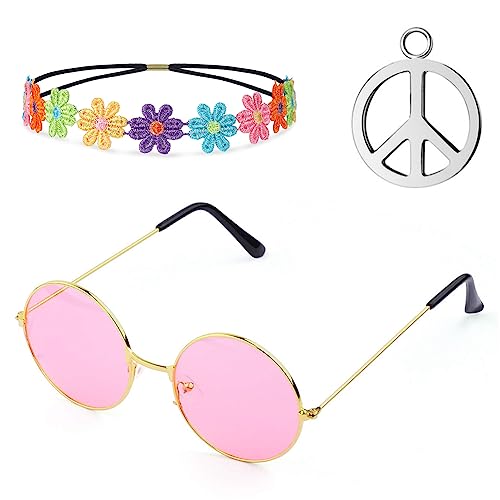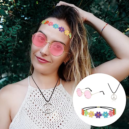 Accessori Festa Hippie: Riceverai 1 pezzo di collana, 1 paio di occhiali hippie e 1 pezzo di fascia hippie, adatti da indossare per le tue diverse feste;