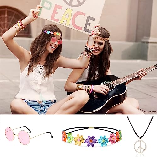 Hippie Accessories: Il set di costumi hippie è adatto per feste a tema anni '60 o '70, eventi estivi, feste di compleanno, feste di cosplay, spettacoli teatrali, abbigliamento quotidiano, festival musicali, feste hippie e altro ancora.