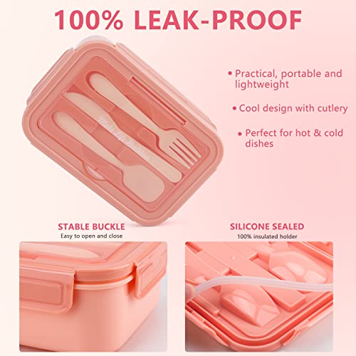 Hippodance Porta Pranzo da Ufficio,Porta Pranzo, Lunch Box Ermetico per Bambini e Adulti,Bento Box con 3 Scomparti e Posate(Forchetta e Cucchiaio)| Sicuri per Microonde e Lavastoviglie(rosa)