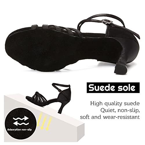 HIPPOSEUS Donna Raso Scarpe da Ballo Latino Nero Sala da Ballo Salsa Salsa Scarpe da Ballo Tacco 7 cm,EU 35