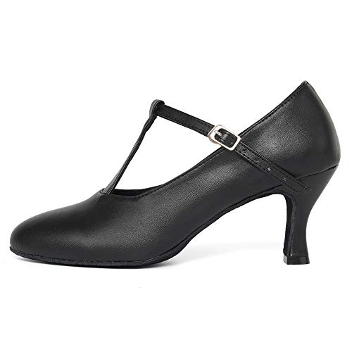 HIPPOSEUS Scarpe da Ballo Donna Punta Chiusa con Cinturino a T Scarpe da Ballo per Salsa Latino-Americana Scarpe da Carattere,Nero,40.5 EU