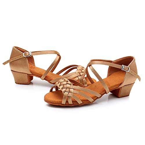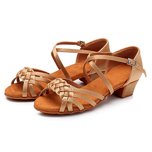 HIPPOSEUS Scarpe da Ballo Latino da Donna e da Ragazza Scarpe da Ballo in Raso con Tacco Basso e Salsa,Beige,EU 40