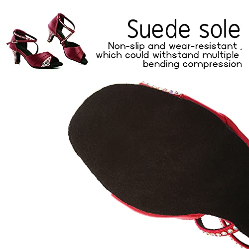 HIPPOSEUS Scarpe da Ballo Latino da Donna Rosso Scuro Scarpe da Prestazione per la Pratica della Pratica di Ballo da Sala da Ballo Suola in Pelle Scamosciata Tacco Svasato,Modello 221, 40 EU