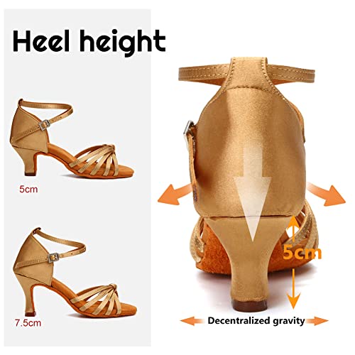 HIPPOSEUS Scarpe da Ballo Latino in Raso da Donna Tacco Alto per l'allenamento e la Performance di Danza,Beige,EU 36