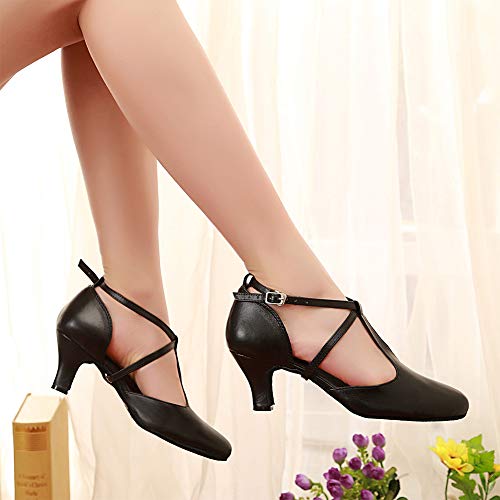 HIPPOSEUS Scarpe da Ballo per Sala da Ballo Latino con Cinturino a T da Donna - Scarpe da Ballo per Feste da Salsa con Carattere Moderno e Professionale da Donna,Nero, 35 EU