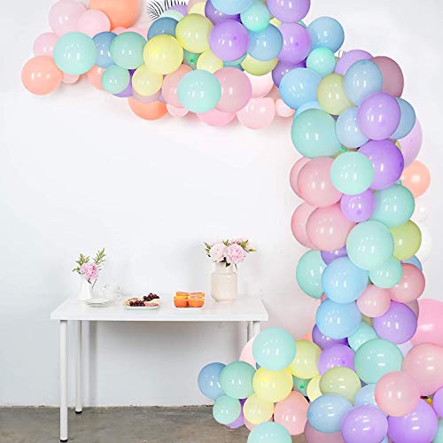 【Palloncino di Colori Macaron】: 9 palloncini di diversi colori, ci sono palloncini blu chiaro, gialli, rosa, lilla, verde menta, verde chiaro, pesca, rosso, arancione, totale 100 pezzi, puoi usarli per creare un bellissimo arco di palloncini arcobaleno.