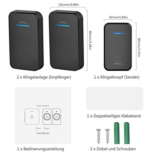 HISAYSY - Campanello senza fili a batteria, IP55, impermeabile, con 1 trasmettitore e 2 ricevitori, per casa e ufficio