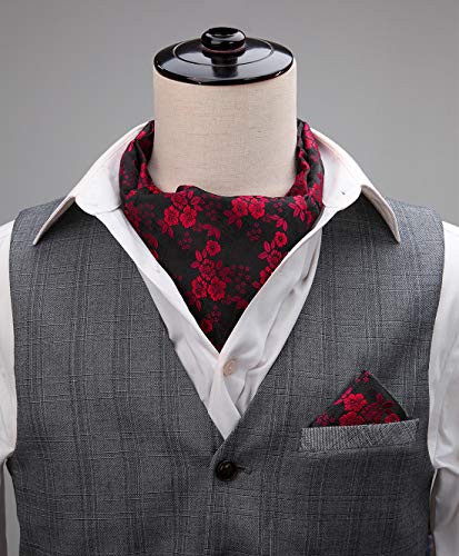 HISDERN Ascot nero bordeaux Floreale Uomo Fazzoletto Fiori Paisley Cravatta da Matrimonio Elegante Foulard Partito Festival Classico Business Cravatte Set
