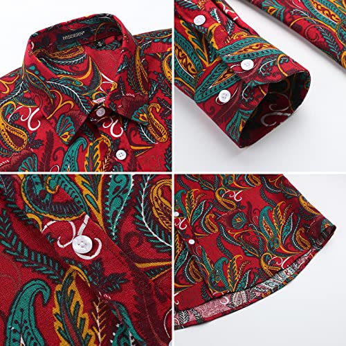 HISDERN Camicie Rosso a Fiori Uomo Casual Manica Lunga Camicia Moda pianta Elegante Floreale Cotone Camicie Partito Nozze Festival M
