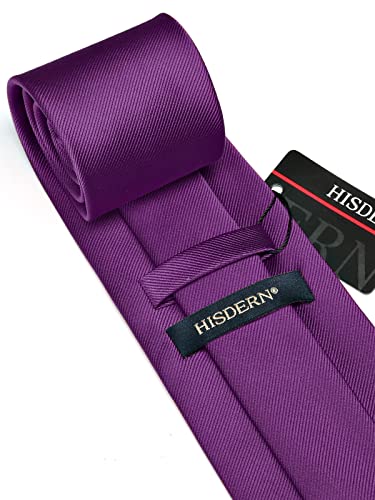 HISDERN Cravatta da Uomo in Tinta Unita Viola Fazzoletto Cravatta Gemelli Set Regali per Feste di Nozze Formali Cravatta per Uomo