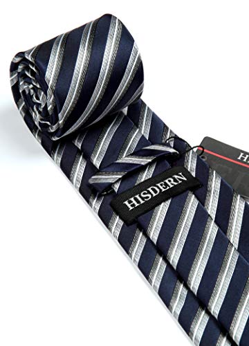 HISDERN Set fazzoletto da uomo e fazzoletto da taschino con cravatta a righe extra lunghe (blu scuro e grigio)