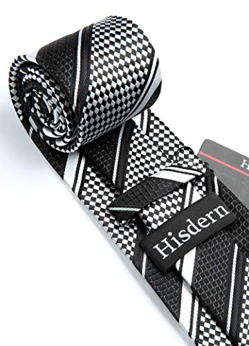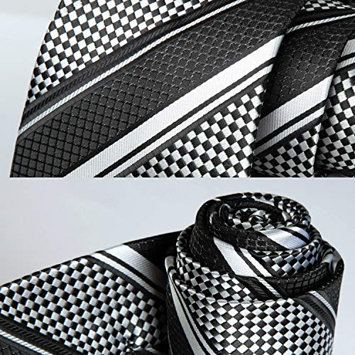 HISDERN Set fazzoletto da uomo e fazzoletto da taschino con cravatta a righe extra lunghe (nero e argento e bianco)