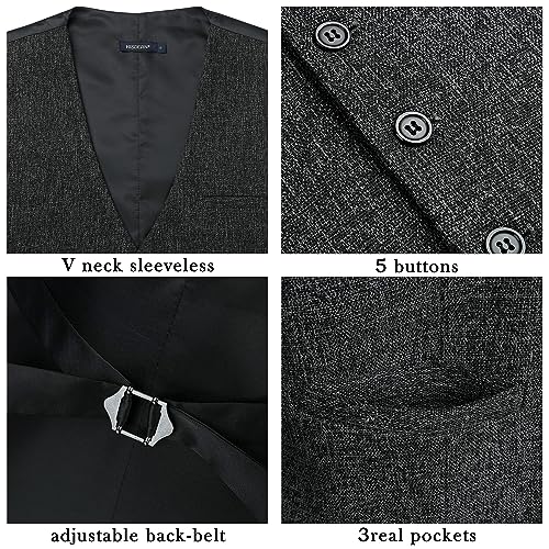 HISDERN Gilet da Uomo Grigio Scuro Elegante Classico Tinta Unita Panciotto Uomo in Cotone Casual Formale Senza Maniche da Cerimonia Festa 3XL