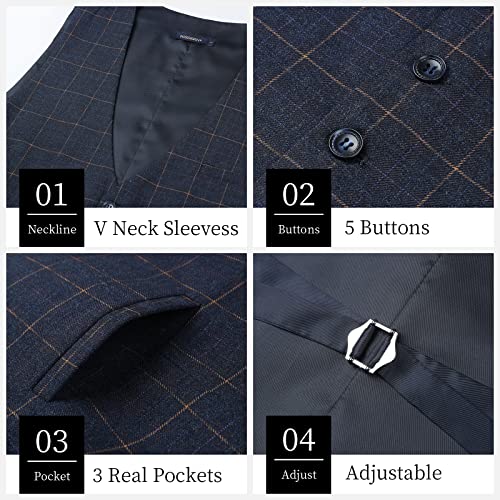HISDERN Gilet da Uomo Matrimonio Gilet da Abiti Senza Maniche Business Formale Classico Elegante Gilet Blu Navy L