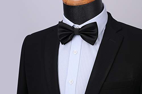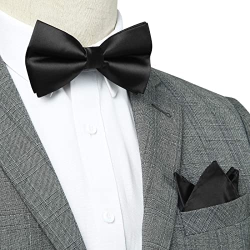 HISDERN Papillon Nero Uomo e Fazzoletto con Gancio già Annodato Regolabile Cravatta a Farfalla per Adulto Pre-legati Farfallino da Smoking