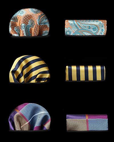 HISDERN Los 3 Stck Herren Krawatte Karo Streifen Solid Color Paisley Krawatten und Einstecktuch Seidenkrawatte Set Klassisch Elegante Hochzeitsfest Taschentuch Krawatte-Mehrere Sets