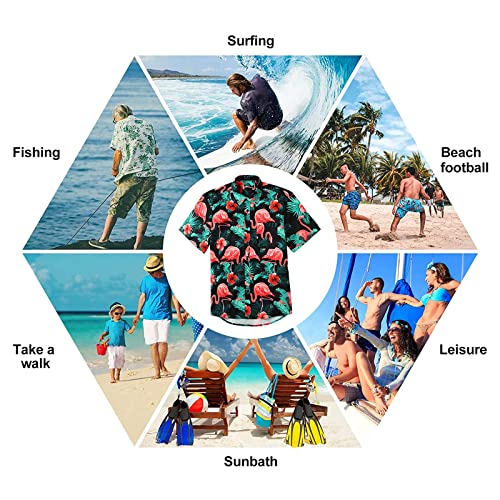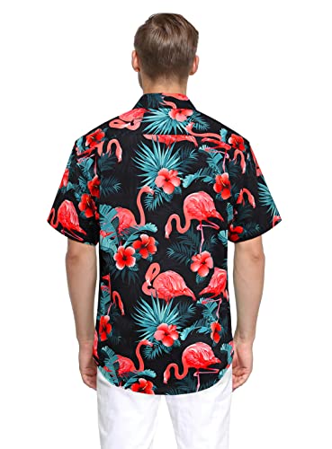 HISDERN Uomo Funky Hawaiian Flamingo Camicie Manica Corta Tasca Frontale Vacanza Estate Aloha Beach Casual Menta Nero Rosa Hawaii Camicia