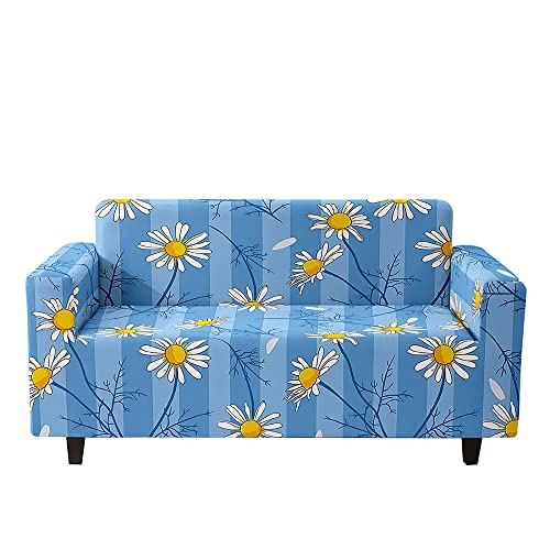 Hiseng Copridivano 1 2 3 4 Posti, 3D Margherita Copridivano Elasticizzato, Copridivano con Braccioli Tessuto Super Morbido Universale Copri Divano Antiscivolo (2 posti,Margherita Blu Cielo)