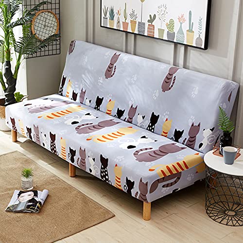 Hiseng Copridivano Senza Braccioli 3 Posti Elasticizzato Fodere Coperture Divano Letto Pieghevole Clic Clac Universale Lavabile Rimovibile Anti Scivolo Copri Divano (Gatto,190-230cm)