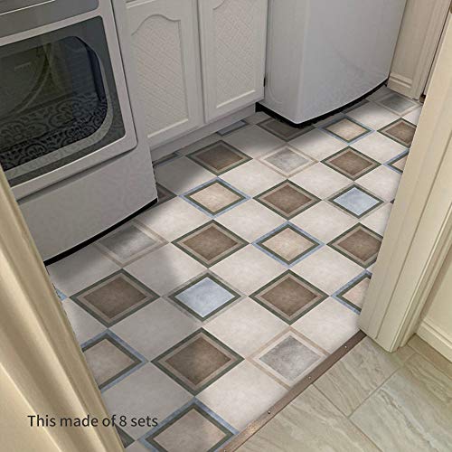 Hiseng Cucina Bagno Adesivi per Piastrelle 20x20 cm, Impermeabile Antiscivolo PVC Autoadesivo Stile Industriale Mattonelle Adesivi per Pavimento Decorazione Casa DIY (Marrone,1 Set di 10 Pezzi)