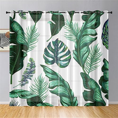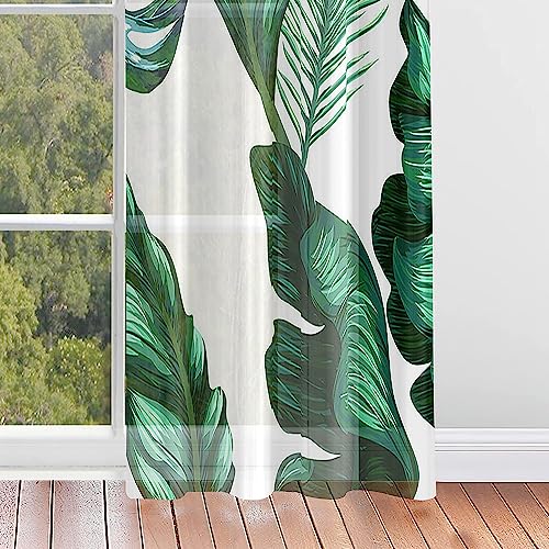 Hiseng 2 Pezzi Tende Voile Semi Trasparente, Decorativi Sheer Tenda per Soggiorno Camera Cameretta Balcone Finestra e Interni, Foglie Nordiche Pianta Leggera Tenda (132x160cm,Foglia di banana)