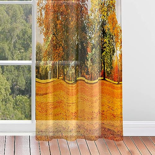 Hiseng 2 Pezzi Tende Voile Semi Trasparente, Decorativi Sheer Tenda per Soggiorno Camera Cameretta Balcone Finestra e Interni, Leggera Tenda Foglia di acero (140x244cm,Foresta)