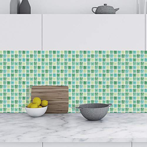 Hiseng Rettangolo Adesivi per Piastrelle da Cucina, Marmo 3D Mosaico Stampa Impermeabile Adesivo da Parete Formato Autoadesivo Decorativo per Bagno Decorazioni, 10x10cm (Verde,10Pezzi)