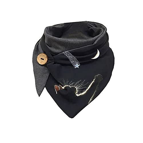 Hiseng Sciarpa Donna Invernale Grande Scaldacollo, Moda Sciarpa Triangolare Vintage Sciarpe Calde Con Stampa Multiuso Morbido Coperta Sciarpa con Bottone (Luna,135-175cm)