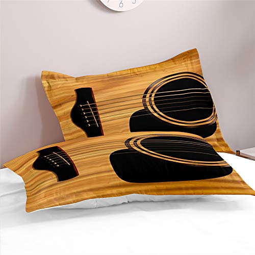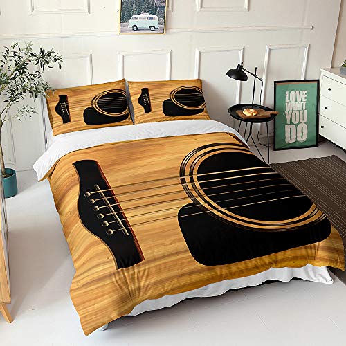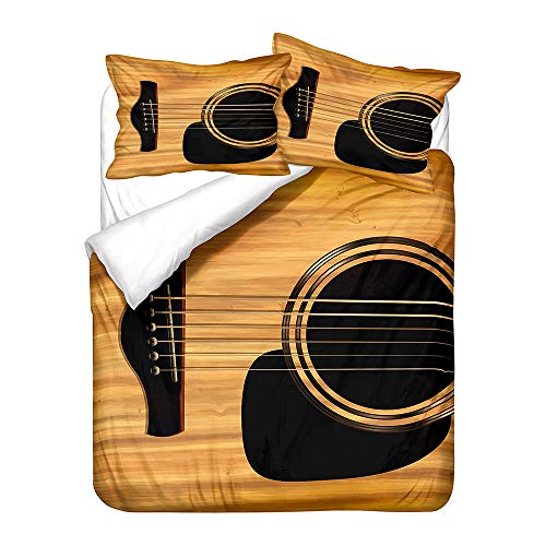 Hiser Set di Biancheria da Letto de 3 Pezzi - Set Copripiumino per Letto Matrimoniale Singolo King in Microfibra - Federa e Copripiumini di Musica Chitarra Stampa (Legna Chitarra,220x260cm)