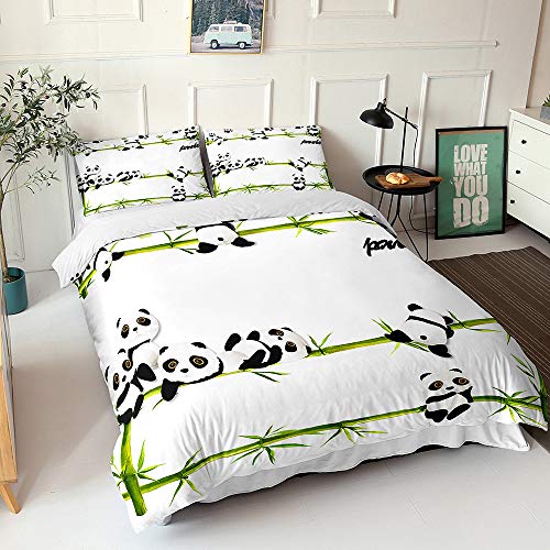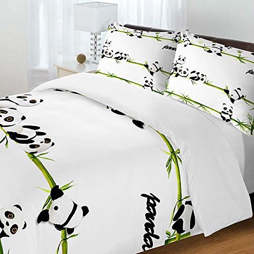 Hiser Set di Biancheria da Letto de 3 Pezzi - Set Copripiumino per Letto Matrimoniale Singolo King in Microfibra - Federa e Copripiumini di 3D Animale Panda Stampa (bambù Panda,180x220cm)