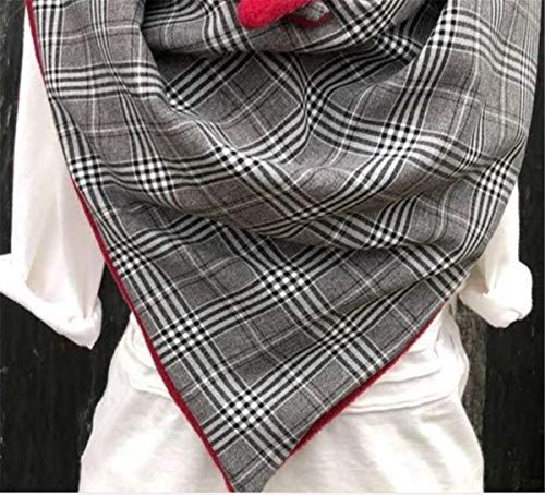 Hiser Sciarpa Donna Invernale Grande Scaldacollo, Moda Sciarpa Triangolare Vintage Sciarpe Calde Con Stampa Multiuso Morbido Coperta Sciarpa con Bottone (Griglia grigia,Lunghezza: 158 cm)