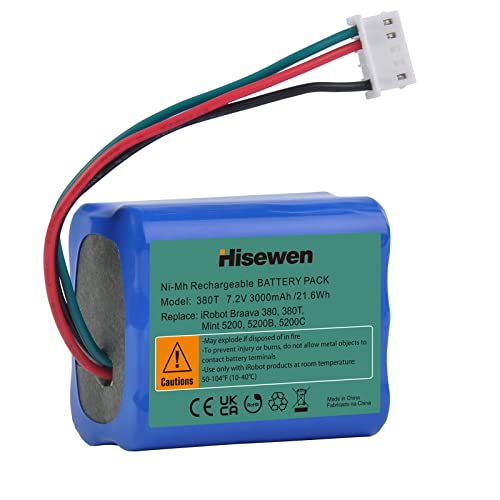 Hisewen Batteria di ricambio da 7,2 V 3000 mAh per aspirapolvere iRobot Braava 380 380T 390T Mint 5200 5200B 5200C
