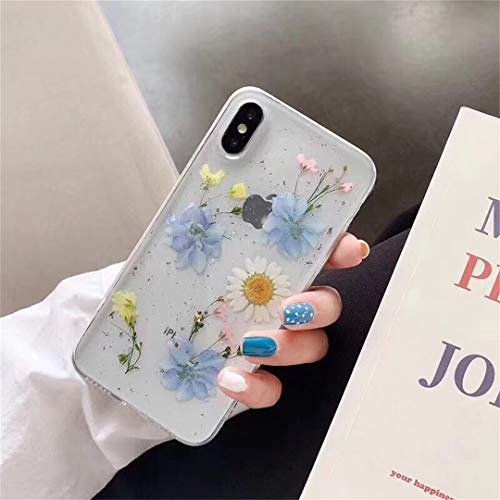 ♥ Cover iPhone 7 Plus, Creativo Vero Fiori Design: utilizzando materiale TPU di alta qualità + petali, ogni custodia è fatta a mano, i fiori e le foglie sono accuratamente essiccati, fiori sono incorporati in un guscio trasparente, davvero bello e non scompariranno mai.