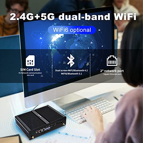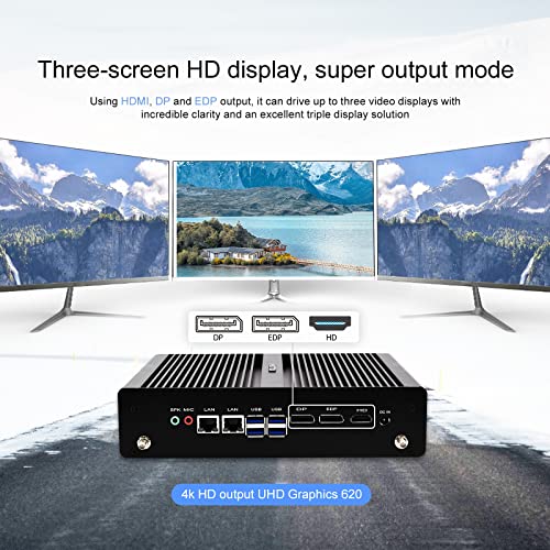HISTTON Nuc Fanless Mini PC Desktop PC,Quad Core Core i7-8550U, 8GB RAM 256GB SSD, 2 * LAN, 1 * HDMI, 1 * DP, 1 * EDP, 1 * DP, 1* SIM, Dual Wifi, BT 4.0, Windows 11 Pro