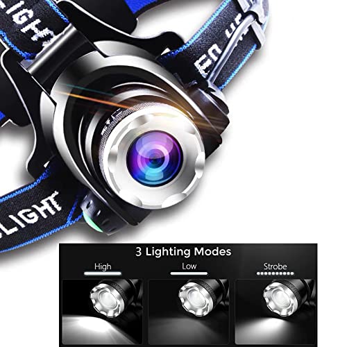 HitJoy Torcia Frontale, Lampade da Testa LED USB Ricaricabile Impermeabile Zoomable con 3 Modalità di Luce per Campeggio Running Pesca Trekking (Nero, Batterie AAA rimovibili)
