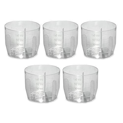 Hitools 5 X misurini in plastica - 50 ml - trasparente - 5/10/15/20/25/30/35/40/45/50 ml