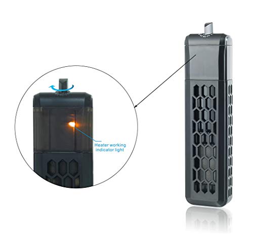 Controllo accurato della temperatura: riscaldatore sommergibile regolabile da 16 °C a 32 °C. Un buon intervallo di temperatura per la maggior parte dei pesci è di 25 - 27 °C. Un termometro adesivo aggiuntivo come bonus per rilevare la temperatura dell'acqua in qualsiasi momento.