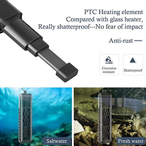 [Più sicuro e vero infrangibile]: realizzato in materiale riscaldante ceramico ossido di titanio, né gli svantaggi dell'ossidazione ad alta temperatura del filo di nichrome, né gli svantaggi di facile rottura dei riscaldatori in vetro. I vostri animali domestici acquatici meritano un riscaldamento ideale.