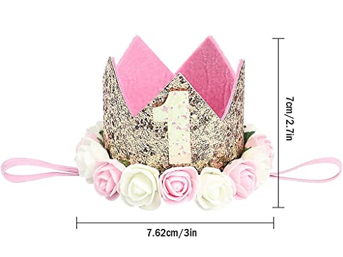 Hitopin 1Pz Principessa Fiore Corona con Numero 1" Neonati Corona Principessa Crown Fascia Accessori per Capelli Compleanno (Rosa)