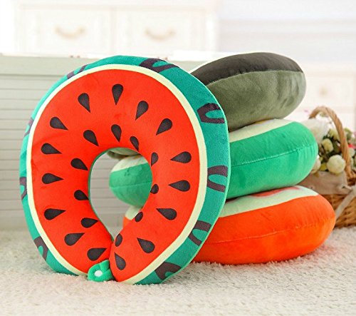 Hivel Frutta Stile Cuscino Forma a U Viaggio Cuscini Guanciale Superficie di Flanella per Collo,Aereo - Anguria