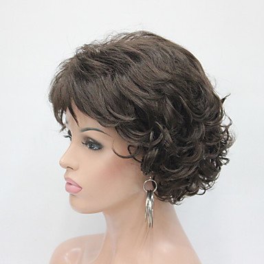 Hivision - Parrucca sintetica da donna con capelli corti e ricci, castagni, colore: marrone