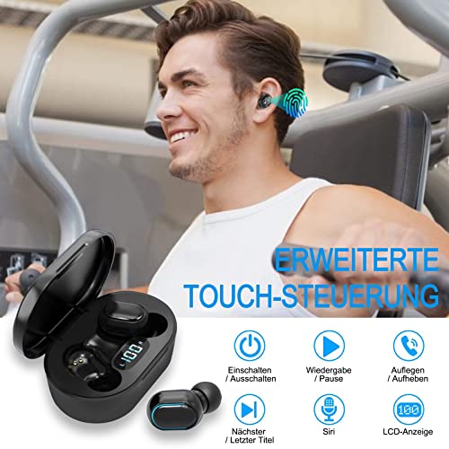 【Cuffie Bluetooth in-ear】: le cuffie wireless sono dotate di un chip Bluetooth 5.0 per garantire una connessione più stabile, una latenza inferiore e un minor consumo energetico durante il trasferimento dei dati. Le cuffie sono completamente wireless. Anche se hai il tuo telefono cellulare in tasca, non devi preoccuparti di interrompere la connessione. Accendere e rifiutare le chiamate tramite pulsante touch.