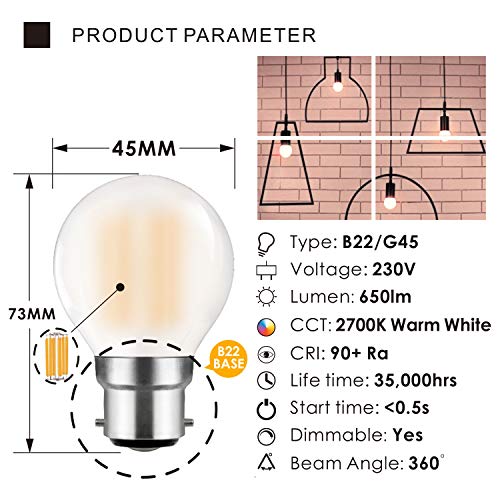 ✔ colore eccellente: le nostre lampadine hanno una splendida bianco caldo da solo una dimensione di 45 mm di diametro. Alto CRI (Indice Resa Cromatica) 90ra è il nostro standard qualità come si vuole tenere sempre vedere vera e propria colore il tuo modo di essi sono tenuti a essere visto.