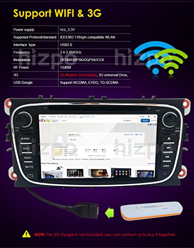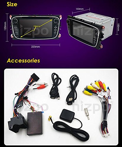 HIZPO Android 5.1 Lollipop Quad Core Car in Dash Radio Double Din Stereo Headunit for Ford Focus Mondeo S-max C-max Galaxy Support GPS Navigation Screen Mirror SWC DVD Radio 3G Wifi Cam-in OBD2 DAB+