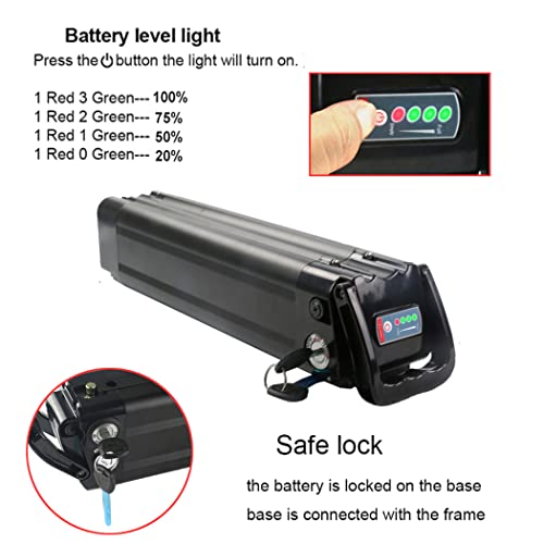 [PROTEZIONE DELLA SICUREZZA E DELL'AMBIENTE] Le batterie dell'ebike sono realizzate con celle di alta qualità, con buone prestazioni di sicurezza, scheda di protezione BMS integrata e protezione da sovraccarico, sovraccarico, cortocircuito. Le nostre batterie per bici elettriche sono state sottoposte a migliaia di scariche ripetute e test di sicurezza, quindi ti senti sollevato nell'usarle.