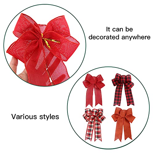 HJHIWE 12 fiocchi di iuta rossi di Natale, 22 x 17,5 cm, decorazione natalizia per albero di Natale, decorazione fai da te per bouquet di fiori e decorazioni per la casa