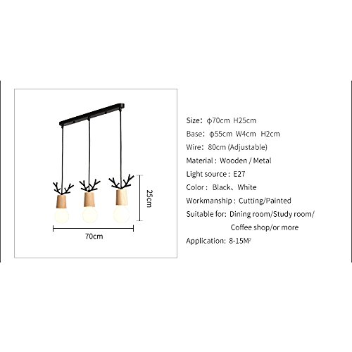 HJR-Lampadari Ciondolo LED in legno americano per cucina bianco Lampada a sospensione in metallo nero E27 Lampadario in legno per cucina 55CM * W4CM * H2CM A+ (Colore: B:White)